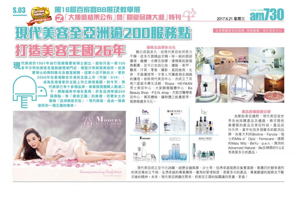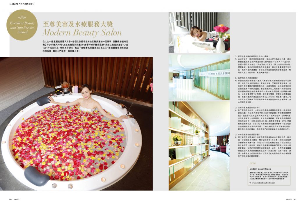 Modern Beauty Salon offers a wide range of treatments by our well-trained beauty therapists. Our beauty consultants review customers' usage regularly and recommend suitable treatments to our customers. We also customize specific treatments according to the needs of our VIP customers. Our senior management closely monitors the latest trends of beauty industry and acquires state-of-the-art beauty machines in order to maintain a pipeline of new treatments.